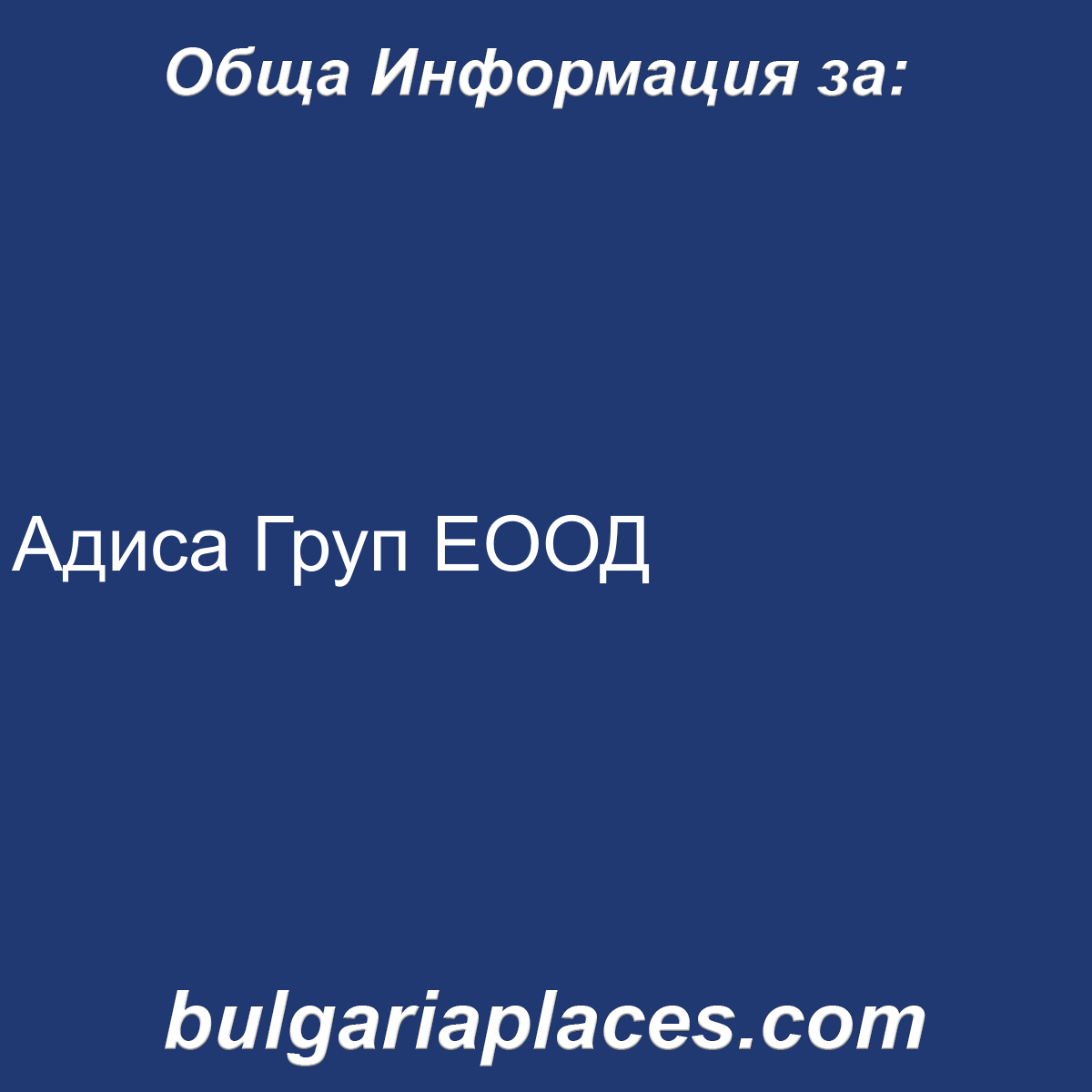 Обща Информация за Адиса Груп ЕООД