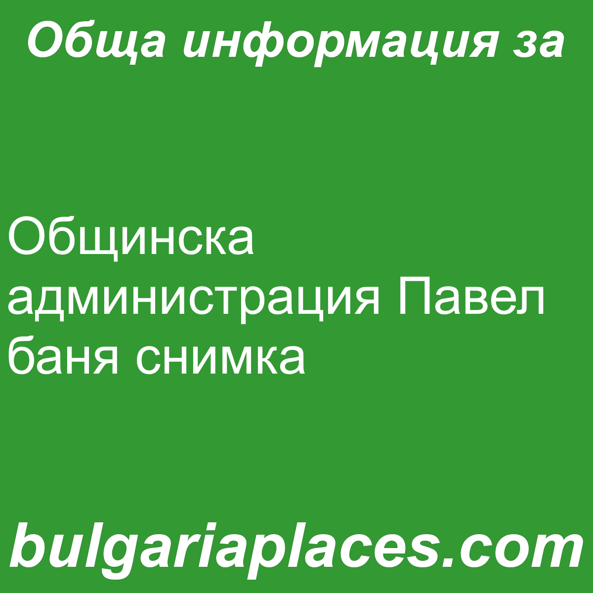 Обща информация за Общинска администрация Павел баня в град Павел баня на адрес бул. “Освобождение”№15. От категория Администрация.