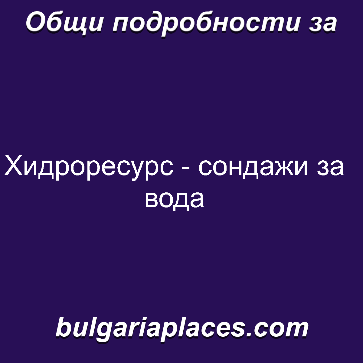 Обща Информация за Хидроресурс - сондажи за вода