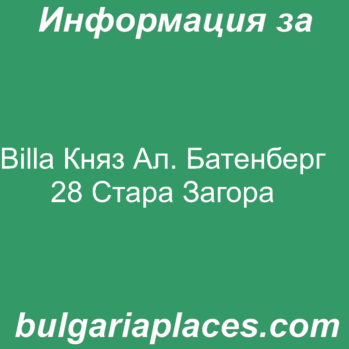 Заглавие: Billa Княз Ал. Батенберг 28 Стара Загора